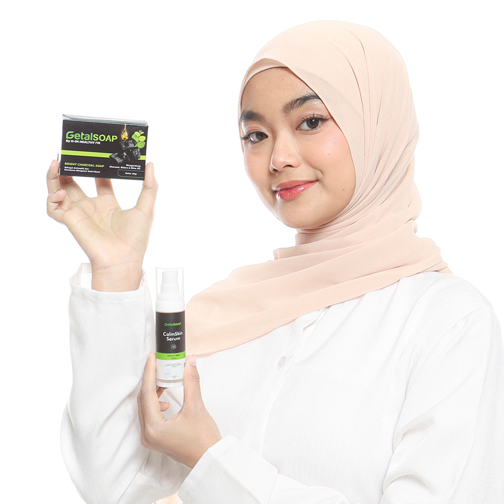 Pakai GetaiSOAP saat mandi, lalu lanjutkan dengan CalmSkin Serum. Kulit lebih tenang, bersih, dan terawat.